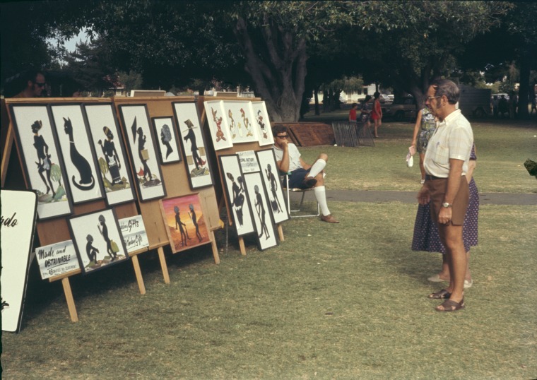 144364PD: Painting Village exhibition, Hyde Park Festival, North Perth, 1972.