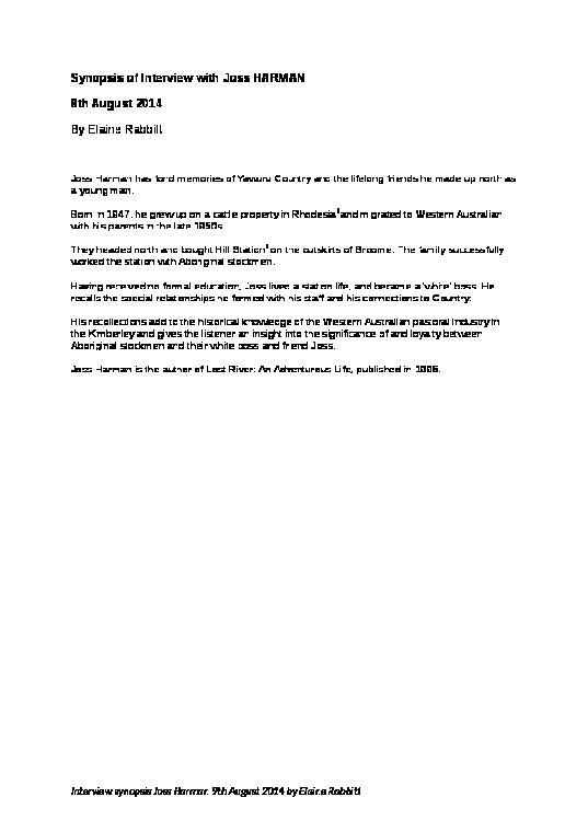 Synopsis of interview with Joss Harman in 2014 / by Elaine Rabbitt.