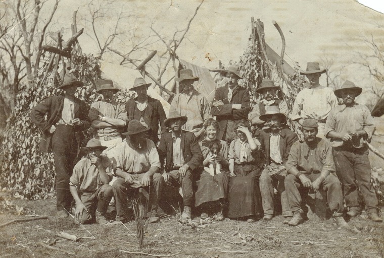 BA2642/81: Camp at Holletts, Robert McQueen 1st left, back row, 1910