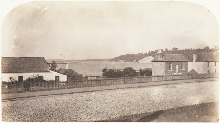 6923B/184: St Georges Terrace, Perth with the William Street Jetty, Mt Eliza and the Narrows in the background, 1861