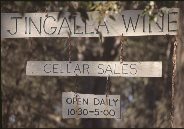 146740PD: Sign for the cellar door at Jingalla Wines, Porongurup, 1994?