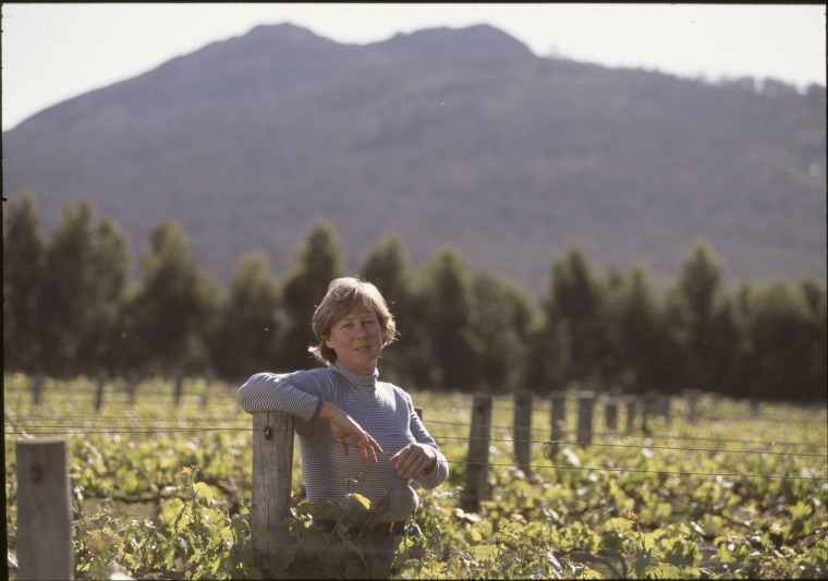 146741PD: Shelley Coad in the Jingalla Wines vineyard which has the beautiful backdrop of the Porongurup Range, 1994?