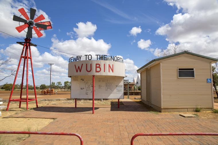 BA2493/721: Visitors' information with maps and emergency contact numbers opposite the Visitors' Centre, Wubin, 2 April 2015