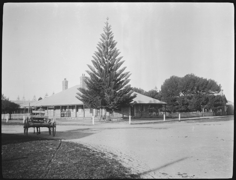 117362PD: Esperance Post Office and the Norfolk Island pine, corner of Dempster and Andrew Streets, Esperance, ca.1920