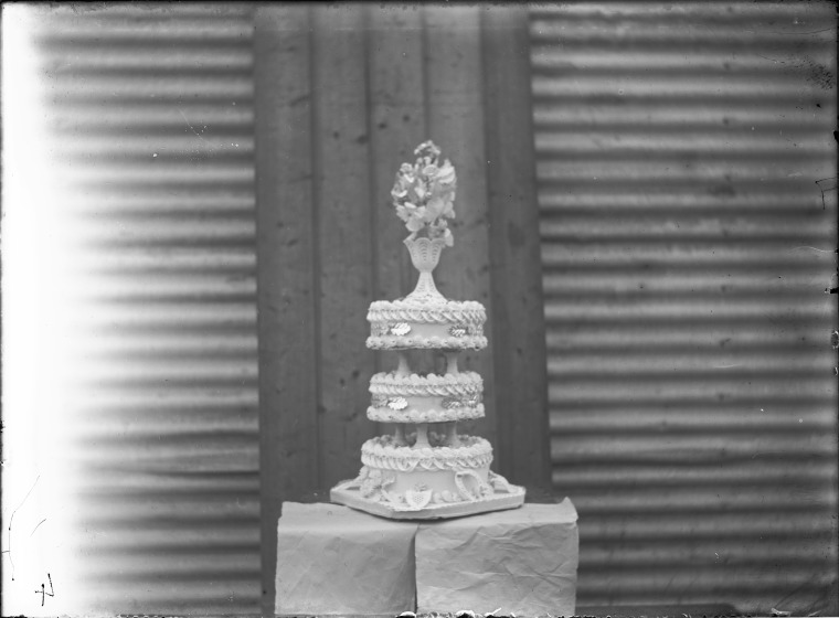 108945PD: Wedding cake for Charles and Minnie Drage at the Forest Hill Hall, Western Australia, ca. 1924.
