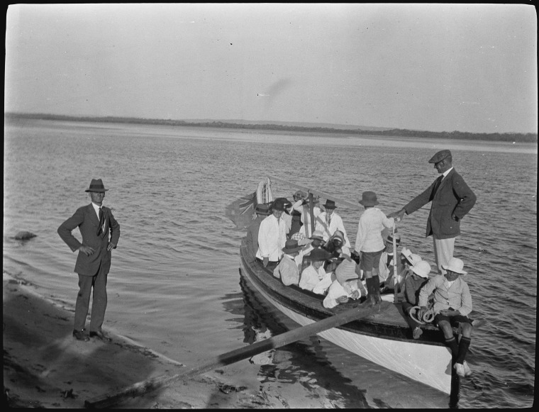117614PD: George Clarke's picnic to Turkey Point, Bunbury, 15 January 1918. The launch arriving