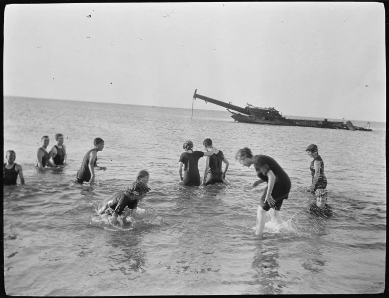117615PD: Swimming near the shipwreck at Turkey Point, Bunbury, 15 January 1918