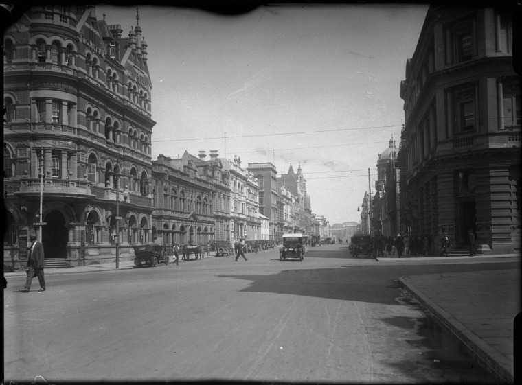 007743PD: St Georges Terrace, Perth west from Barrack Street, 1929?