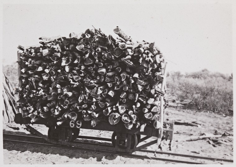 BA944/08: Fuelwood loaded on woodline truck, Sons of Gwalia Mine, ca. 1930.