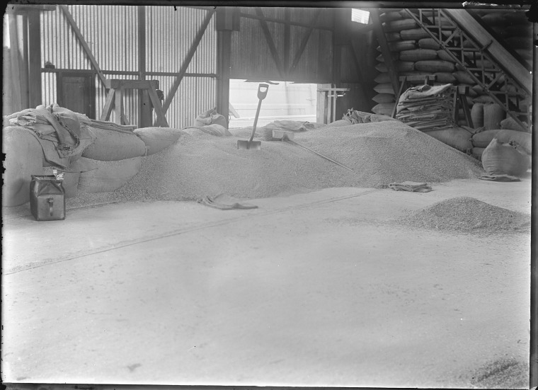 153983PD: Wheat handling operations at the North Wharf grain sheds, Fremantle Harbour, 1911?