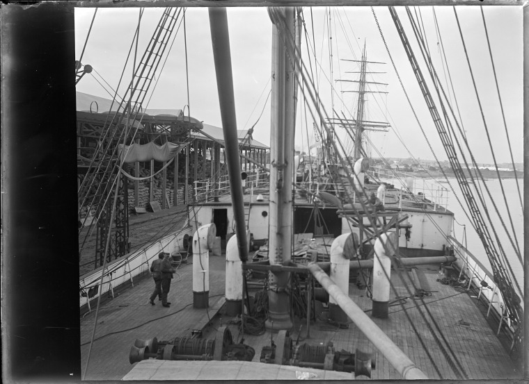 153972PD: Wheat handling operations at the North Wharf grain sheds, Fremantle Harbour, 1911?