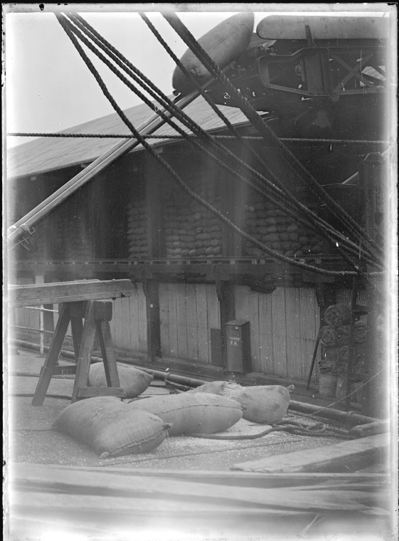 154000PD: Wheat handling operations at the North Wharf grain sheds, Fremantle Harbour, 1911?