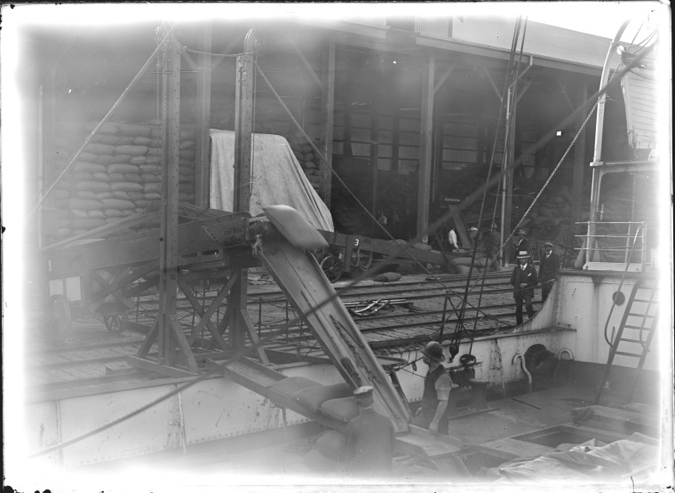 154001PD: Wheat handling operations at the North Wharf grain sheds, Fremantle Harbour, 1911?