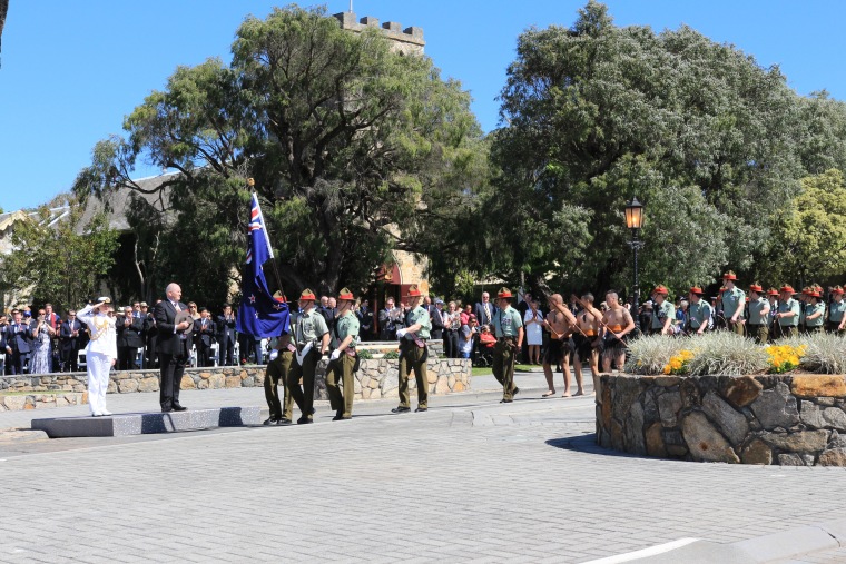 BA2745/24: The Governor General of Australia, Sir Peter Cosgrove takes the salute at the official Troop March.