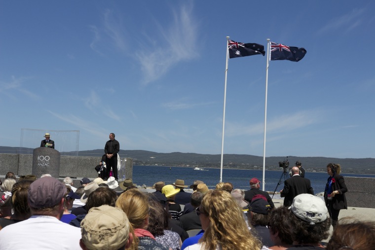 BA2745/35: Peter Aspinall, chairman of the Albany Centenary of Anzac Alliance, speaking at the Commemorative Service.