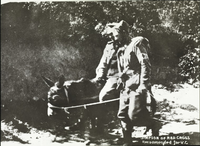 3239B/96: John Simpson Kirkpatrick and his donkey rescue a wounded soldier at Gallipoli, 1915
