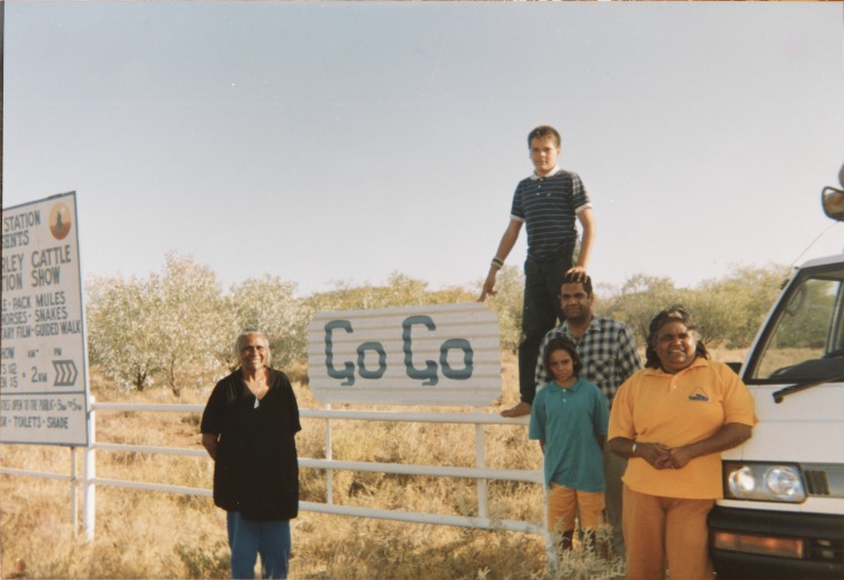 BA1240/2: Family portrait near Gogo Station sign, ca. 1990.