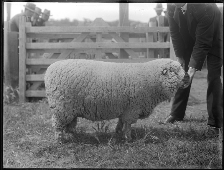 229225PD: Mr J. O'Connell's champion Shropshire ram at the Bunbury Show, 1913