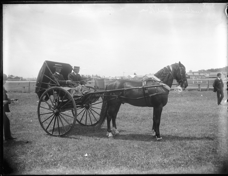 229227PD: Mr E. Ludlow and his prize trotting stallion "Earl Huon" at the Bunbury Show, 1913