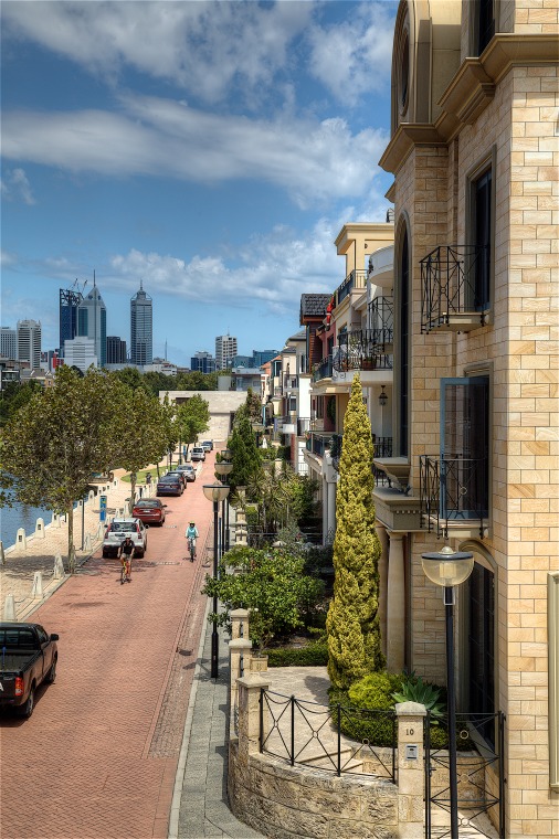 BA2741/76: View along the front of townhouses, Claisebrook Cove, 2/1/2012
