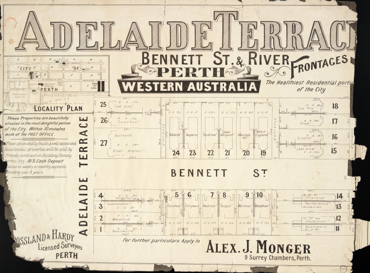 55/16/5: Adelaide Terrace : Bennett St. & river frontages, Perth, Western Australia, ca. 1900.