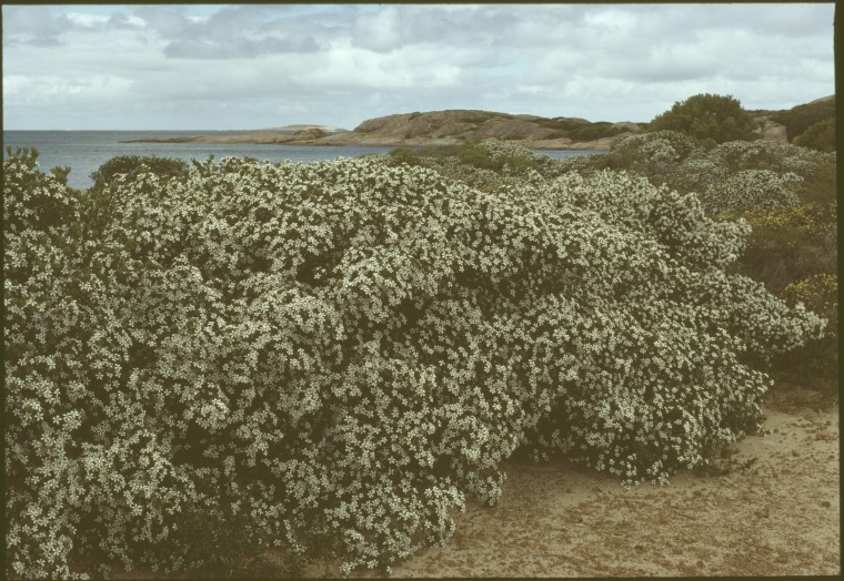143531PD: Wedding Bush, Ricinocarpus tuberculatus, Rossiter Bay, Cape Le Grand National Park, October 1983.