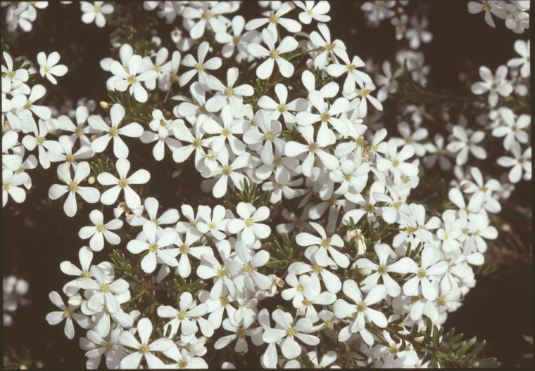 143539PD: Wedding Bush, Ricinocarpus tuberculatus, Rossiter Bay, Cape Le Grand National Park, October 1983.