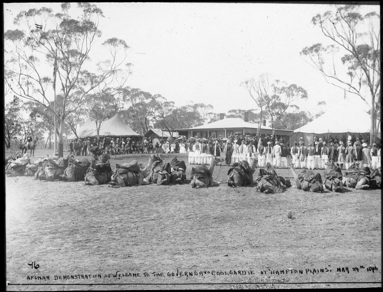 090470PD: Afghan demonstration of welcome to the Governor to Coolgardie at "Hampton Plains", March 24 1896.