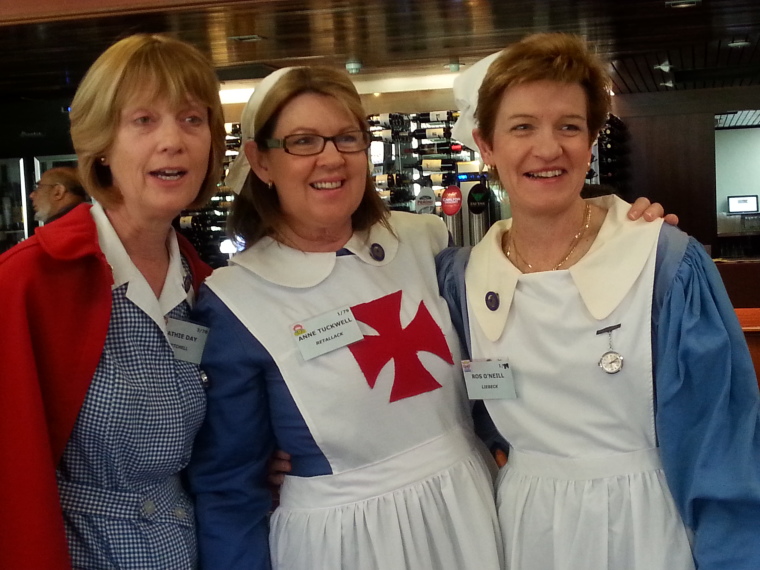 BA2573/118: Kathie Day, Anne Tuckwell and Ros O'Neill in nurses uniforms.