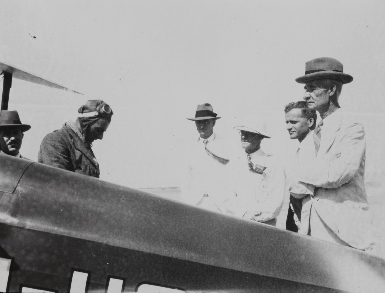4383B/287: H.F. (Jim) Broadbent prepares his Avro Avian IVM VH-UQE "Dabs" at Wyndham during his record round Australia flight, 3 September 1931