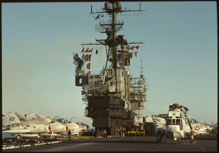 147401PD: On the deck of the aircraft carrier USS Midway in Fremantle Harbour, ca.1988