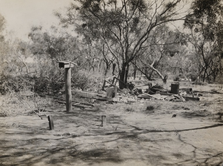 4131B/4/40: Chronometer pillar at thedeserted camp, 1922 Solar Eclipse Expedition to Wallal.