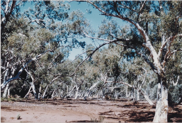 BA2817/4/80: Gum trees line creek bed, Tom Price, May 1968