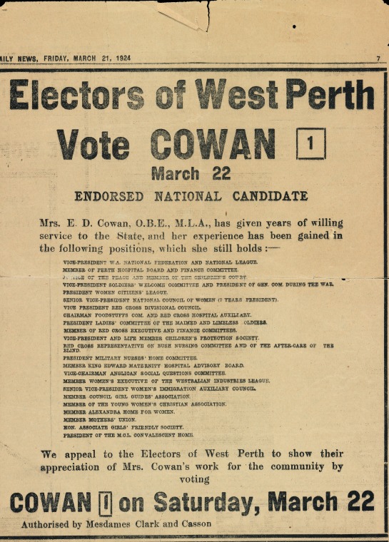 ACC 9587AD/122: Electors of West Perth vote Cowan 1 (Daily News , March 21, 1924)