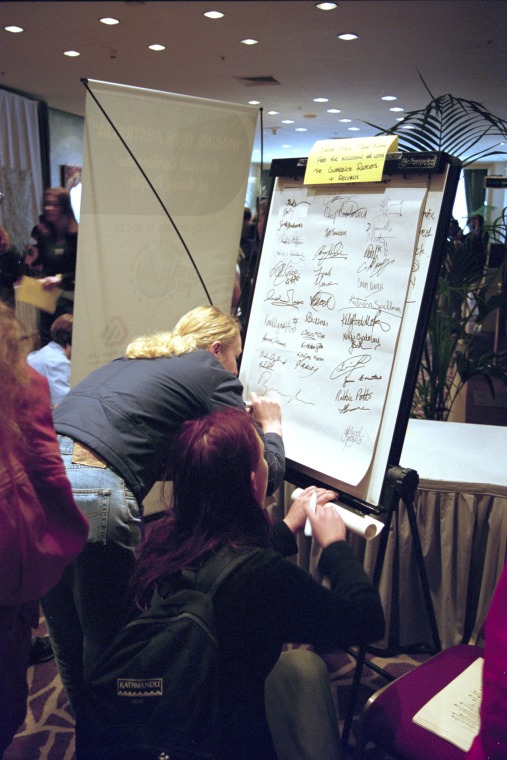 370597PD: Conference delegates signing up at the opening of the Centenary of Federation National Conference of Young People, Perth Concert Hall, 21 September 2001.