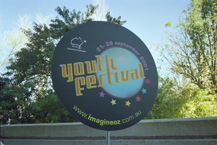 370593PD: Sign advertising the Centenary of Federation Youth Festival, 2001.