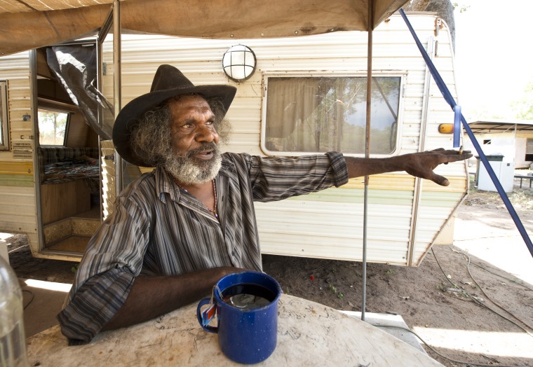 BA2840/32: Alec Ward explaining the Big Dingo dreaming story to me which the Nulwirriwirri Outstation is named after 26 April 2017