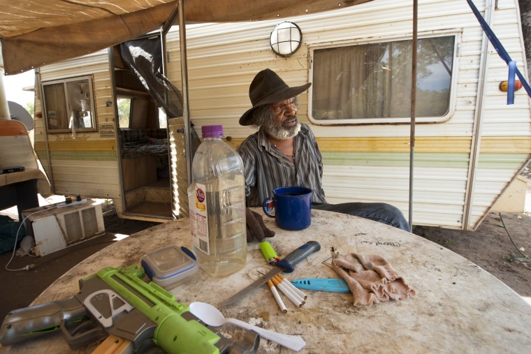 BA2840/33: Alec Ward outside his caravan at Nulwirriwirri Outstation East of Kununurra 26 April 2017