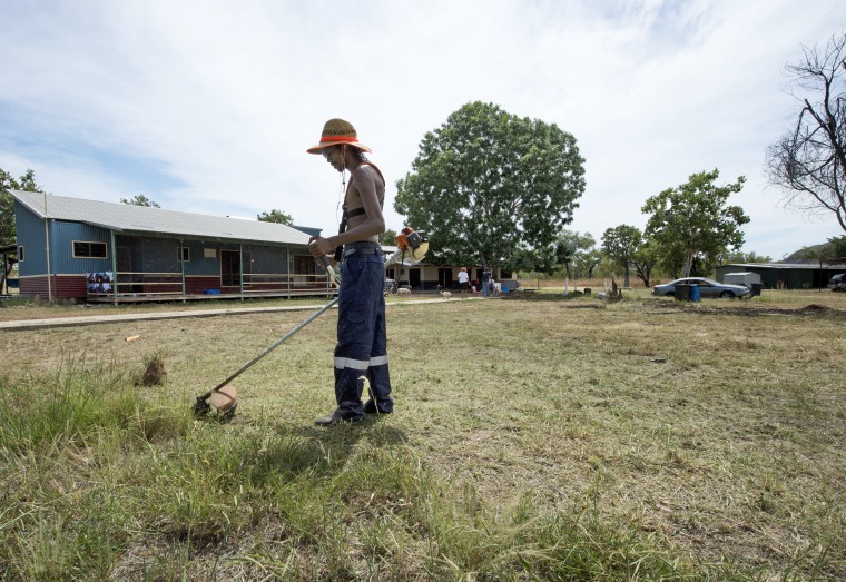 BA2840/26: Jaome Campbell who is Ben's son in law cleaning up around the Outstation at Cockatoo Springs 26 April 2017