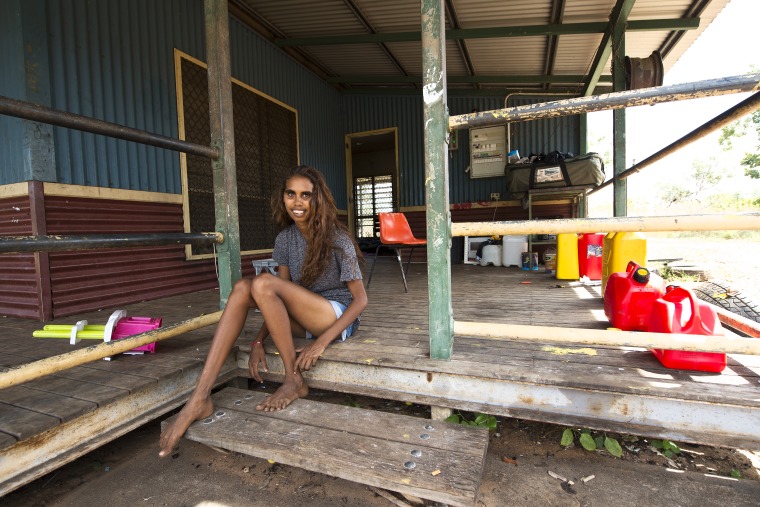 BA2840/28: Twenty year old Sonya Ward seated out the front of her home in the Cockatoo Springs Community east of Kununurra 26 April 2017