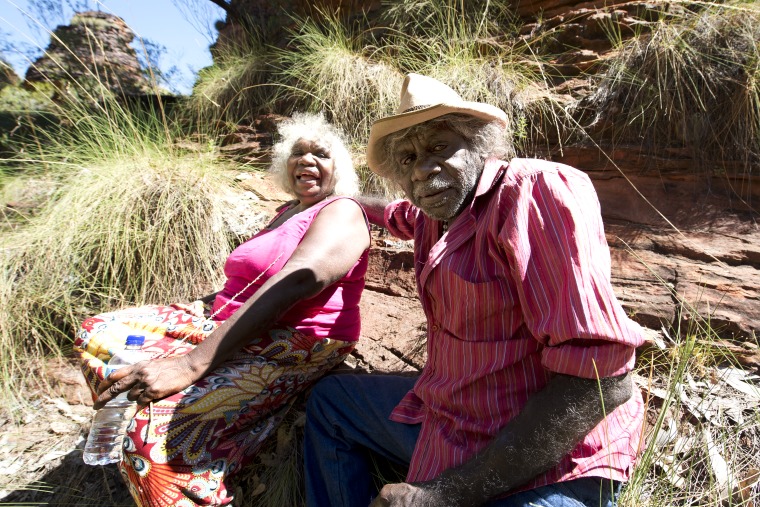 BA2840/137: Artist and elder Agnes Armstrong with her husband Quebec Namala in Hidden Valley, Kununurra, 11 May 2017