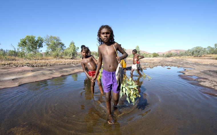 BA2840/226: Grace Hall proudly displaying her catch of black bream at Barlow Springs on her grandmothers country in the East Kimberley 26 May 2017