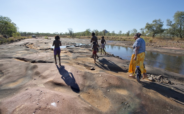 BA2840/228: Jodie Hall & her family walking back to their car after fishing for black bream at Barlow Springs in the East Kimberley 26 May 2017
