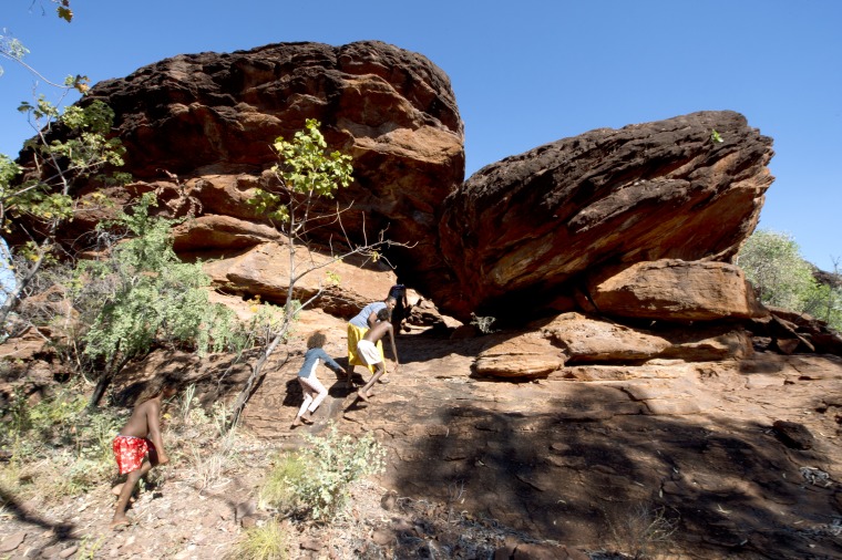 BA2840/233: Jodie Hall & her family visiting her mothers rock art site at Barlow Springs in the East Kimberley for the first time in seven years 26 May 2017