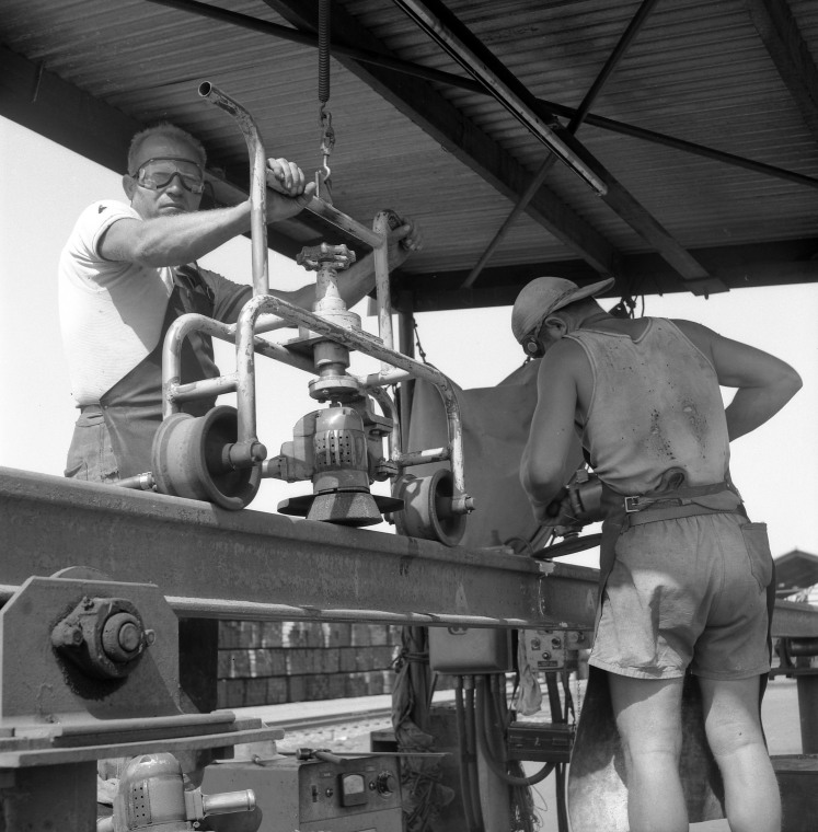 BA2817/2117: Track welding and grinding at the 2 Mile Yards, Dampier, 1966