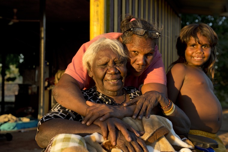 BA2840/259: Jodie Hall and her son Patrick love Lena Nyadbi, at Jodie's home in Mirima, Kununurra, 13 August 2017