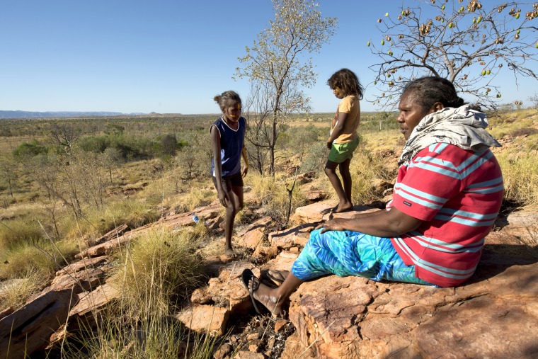 BA2840/262: Jodie Hall and her children on Lena Nyadbi's country at Mt Evelyn, 19 August 2017