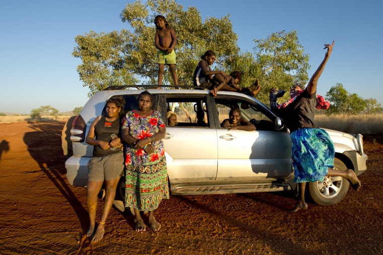 BA2840/270: Jodie Hall and her family with Lena Nyadbi ready to leave Lena's country at Mt Evelyn, 19 August 2017