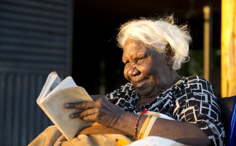 BA2840/252: Lena Nyadbi with her cherished photograph album, Mirima, Kununurra, 13 August 2017