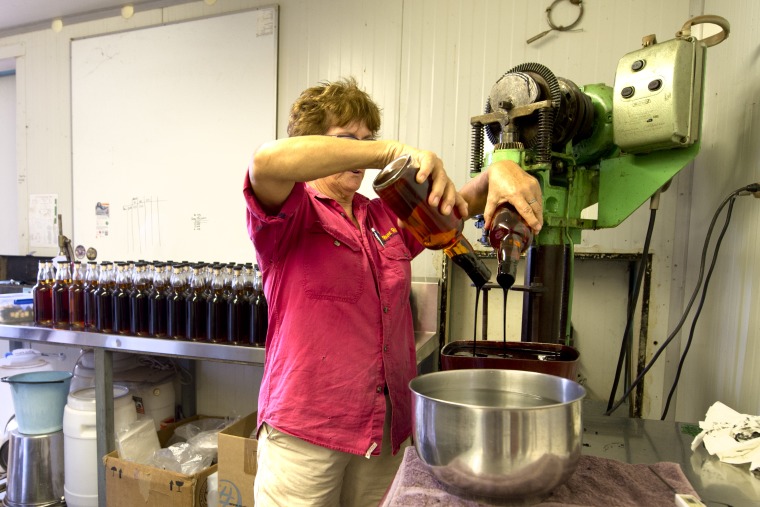 BA2840/318: Distiller Margaret Lyons sealing the tops of bottles of rum with wax at the Hoochery Distillery, Kununurra, 13 April 2017